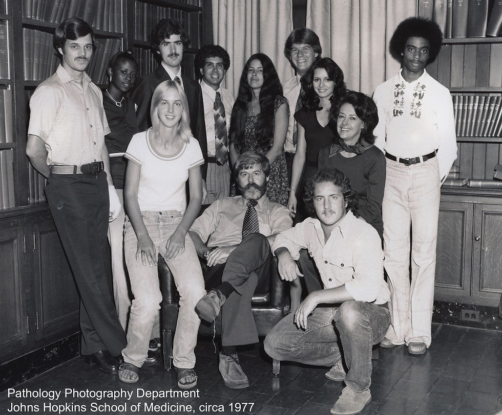Why mention a Hopkins revisit? Got my first start as a photographer almost fifty years ago interning in Hopkin’s pathology photography department under our inimitable director Raymond “Pete” Lund. This was our department photo (with me in the lower right next to Pete)…